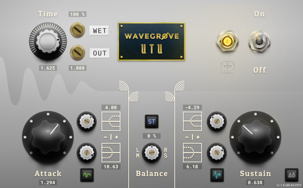 Utu is a plugin used to differentiate the transients of a sound from the Sustain that comes after it. The plugin allows you to then edit these parts separately in terms of shelving EQs and volume, which in the case of the Attack control, allows you to really bring out the smack from your sound, or to remove it pretty much entirely, leaving only the sustain of your instruments. There is a Time control to allow you to control the lenght of the transient tails, which allows you to control what the other controls affect more precisely. A Wet/Dry blend and an Output trim exist to let you blend the effect back into the original audio just as you want it. Buttons also exist to add Vastaus style Smoothing separately to both the Attack and Sustain sections.